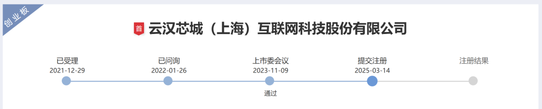 云汉芯城报的是创业板,他是2025年3月的第二周提交注册。